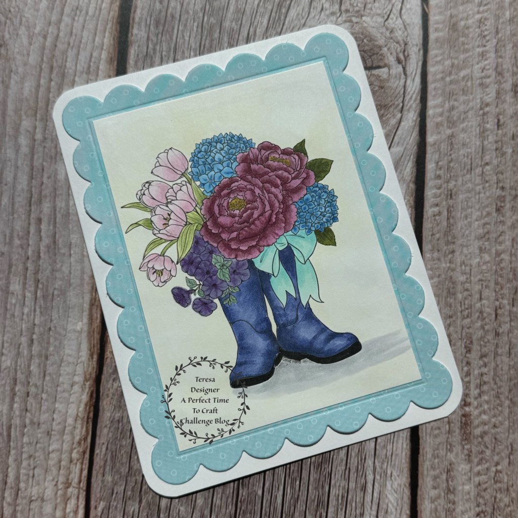 For our July A Perfect Time To Craft Challenge, we were thrilled to have Conie Fong Art as our sponsor. I chose her stunning Bootiful Bouquet digital image to create a versatile card that can be used for many different occasions.