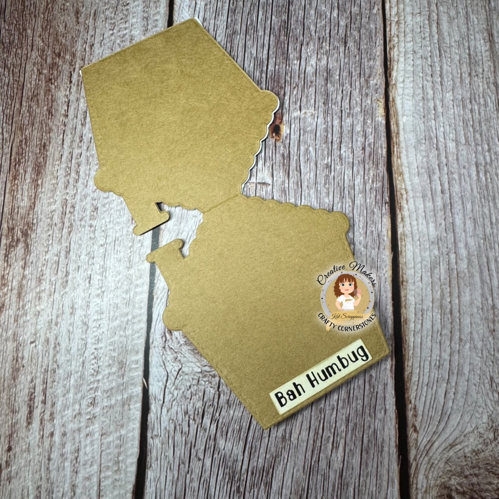 Rather than placing a sentiment on the front, I chose to keep the focus on the gingerbread house design. I added a holiday sentiment to the inside using the Simple Sentiments Holiday Stamps and Universal Sentiment Die from Kat Scrappiness.