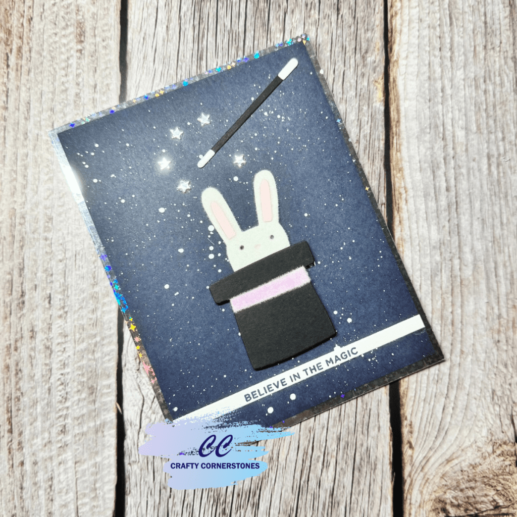 The Spellbinders 2025 Advent Calendar continues to bring the magic, and Day 3 delivered one of the most nostalgic designs so far. Behind today’s door was an adorable bunny peeking out of a magician’s hat. That instantly brought back childhood memories of watching rabbits magically appear from top hats, so of course that became the inspiration for today’s card.