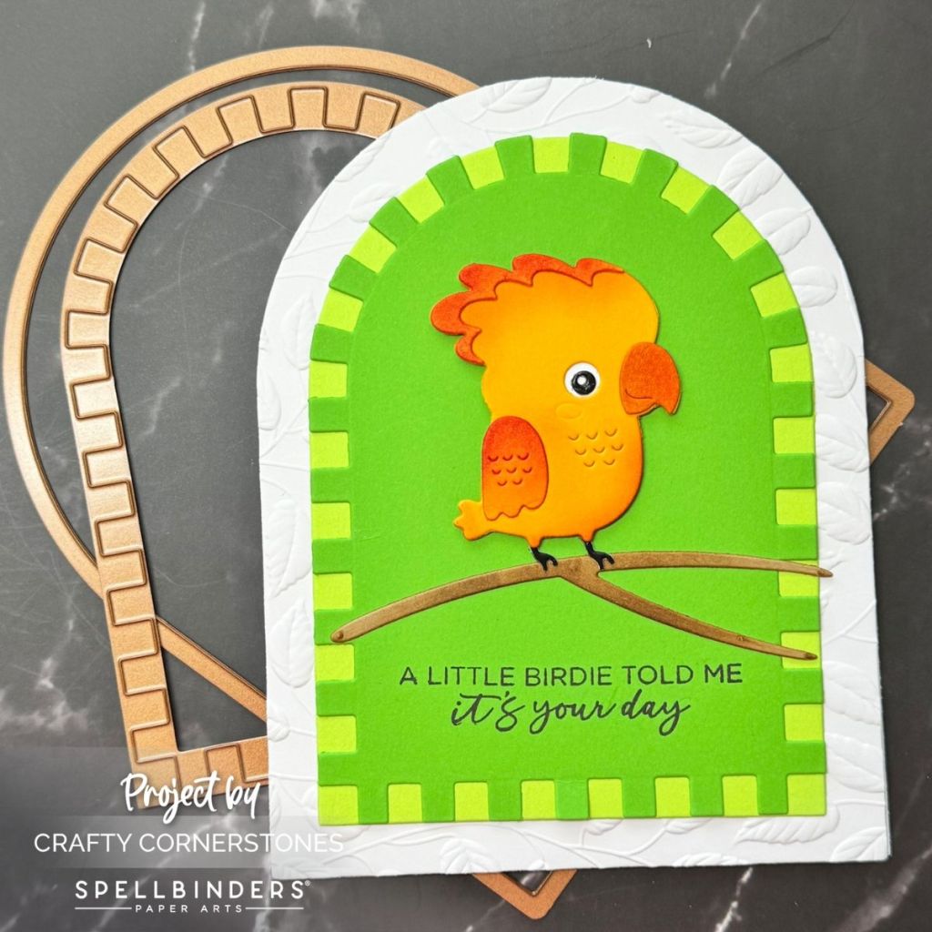 The standout element that really pulls this card together is the Spellbinders Color Block Accent Arches. These were originally released as an add-on to the Spellbinders Just Add Cake Celebration Box, but they truly shine as a standalone set. When paired with the Spellbinders Essential Arches, you can create a bold and eye-catching layered effect.
